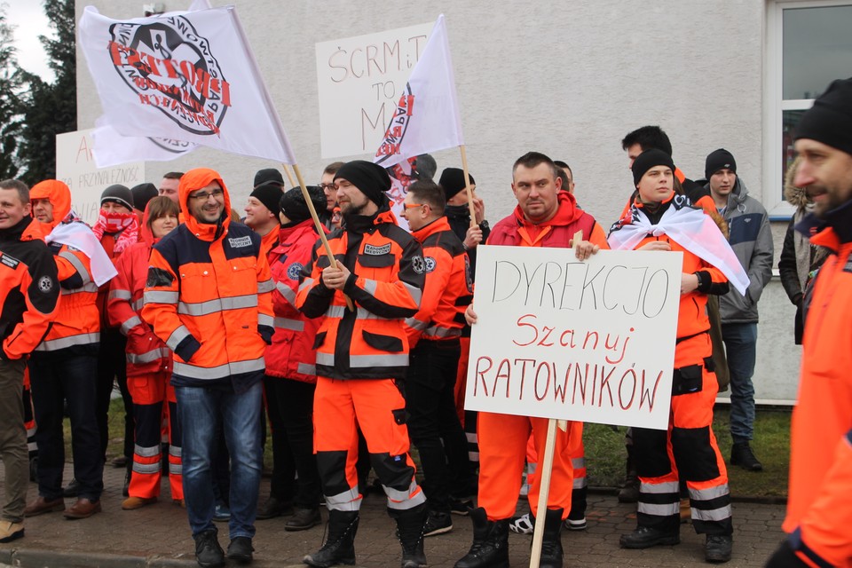 W olsztynie, w rejonie urzędu wojewódzkiego, odbył się protest ratowników medycznych.